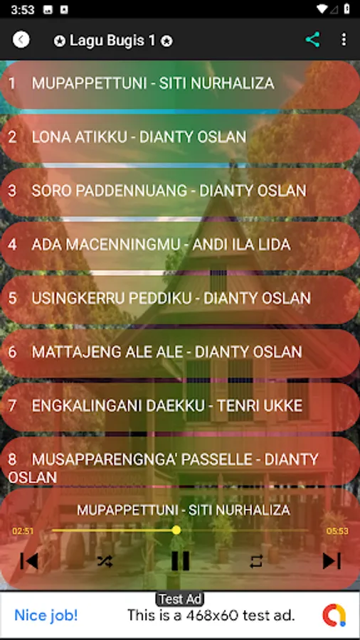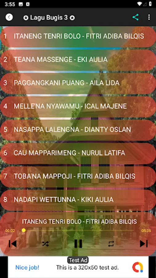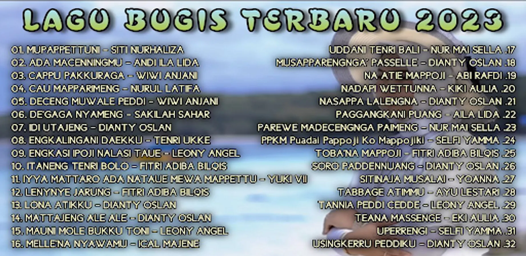 This Bugis Mupappettuni 2023 song is an mp3 music player application that runs offline. The melodies of Bugis songs are generally characterized by soft, beautiful rhythms and full of emotional nuances. Bugis singer Dianty Oslan is one of the singers who has a melodious voice and deep inspiration, although it is undeniable that there are many other potential Bugis singers such as Fitri Adiba Bilqis, Leony Angel, Wiwi Anjani, Nur May Sella, Selfi Yamma, Aila Lida and Siti Nurhaliza who performed Muppettuni song.