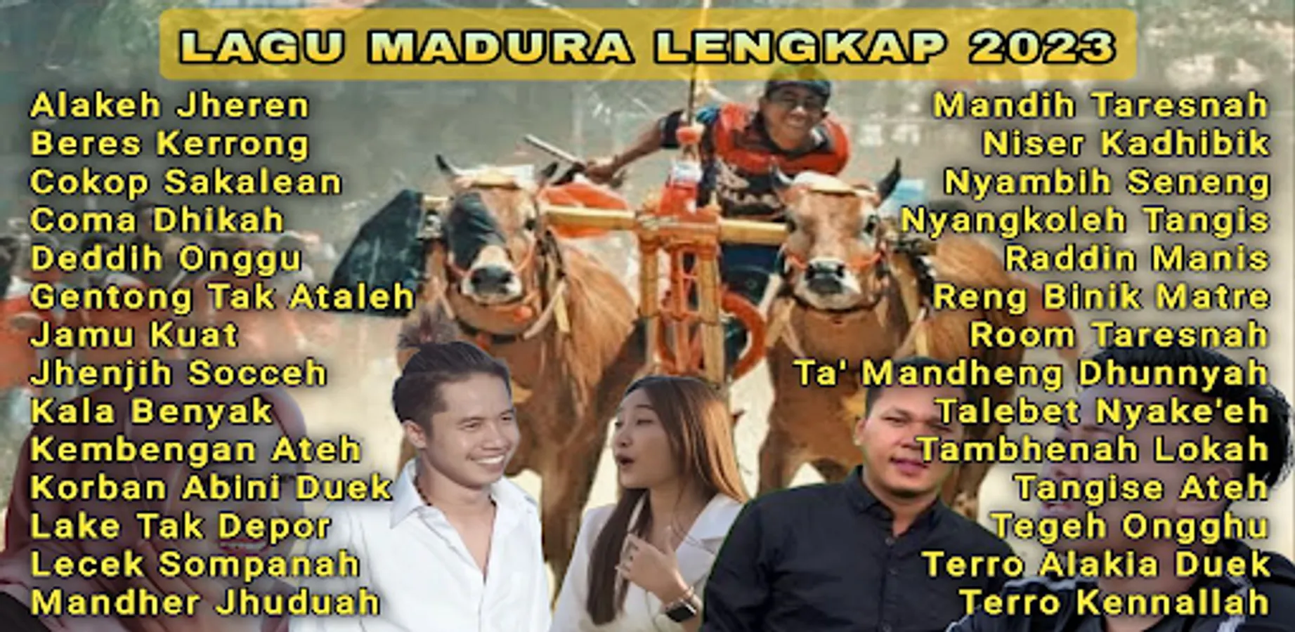 In the Complete Madura Song Selection 2023 application there are 28 songs that we present to you lovers of offline Madura mp3 songs, several Madura singers are on this album such as Fajar Syahid, Aisyah Icha, Sonia Fajri, Fariez Meonk, Kacong Arye, Ningsih DA, Samsul Arif etc.