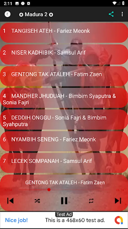 The features in it are very simple and easy to use, Indian style songs, Madura dangdut koplo songs are also included. We hope you are pleased with this Complete 23 Selected Madura Song application.