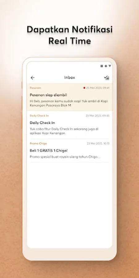 Use Kopi Kenangan App to pre-order your favorite coffee in advance and you will be notified once your order is ready. No more queueing with anxiety, stress and uncertainty!