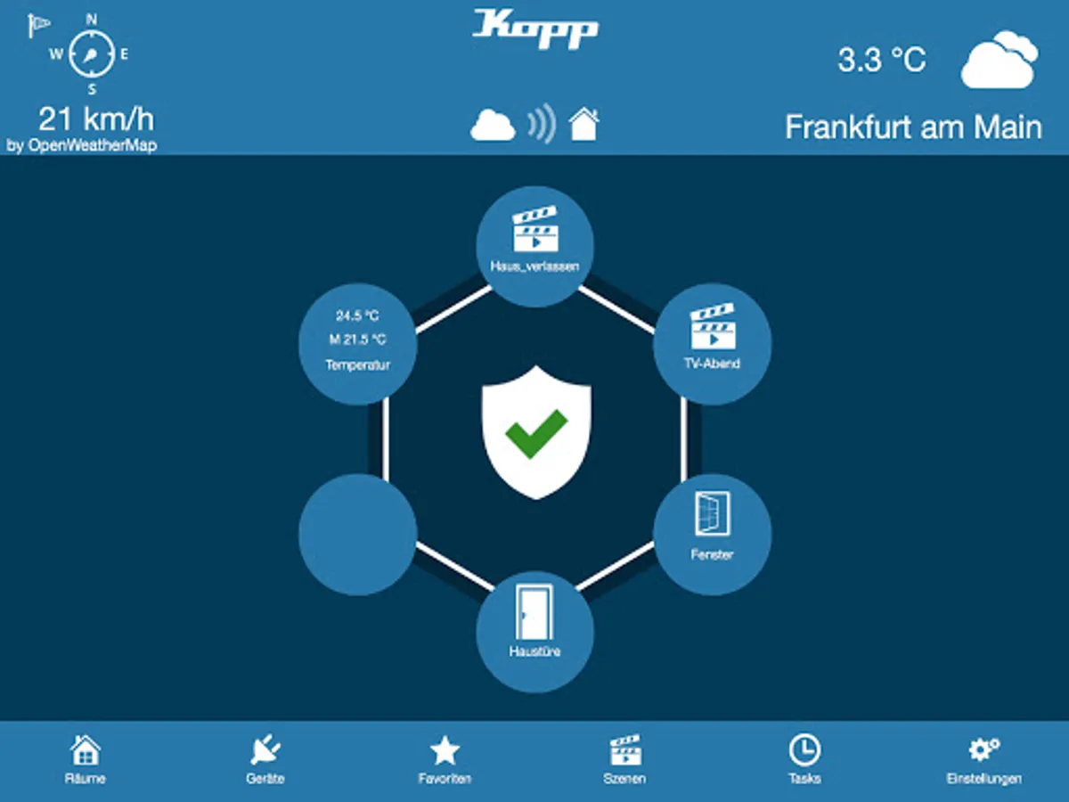 The Kopp Home Control App is used to configure and operate your Kopp smart home system with all mobile devices such as smartphone or tablet.