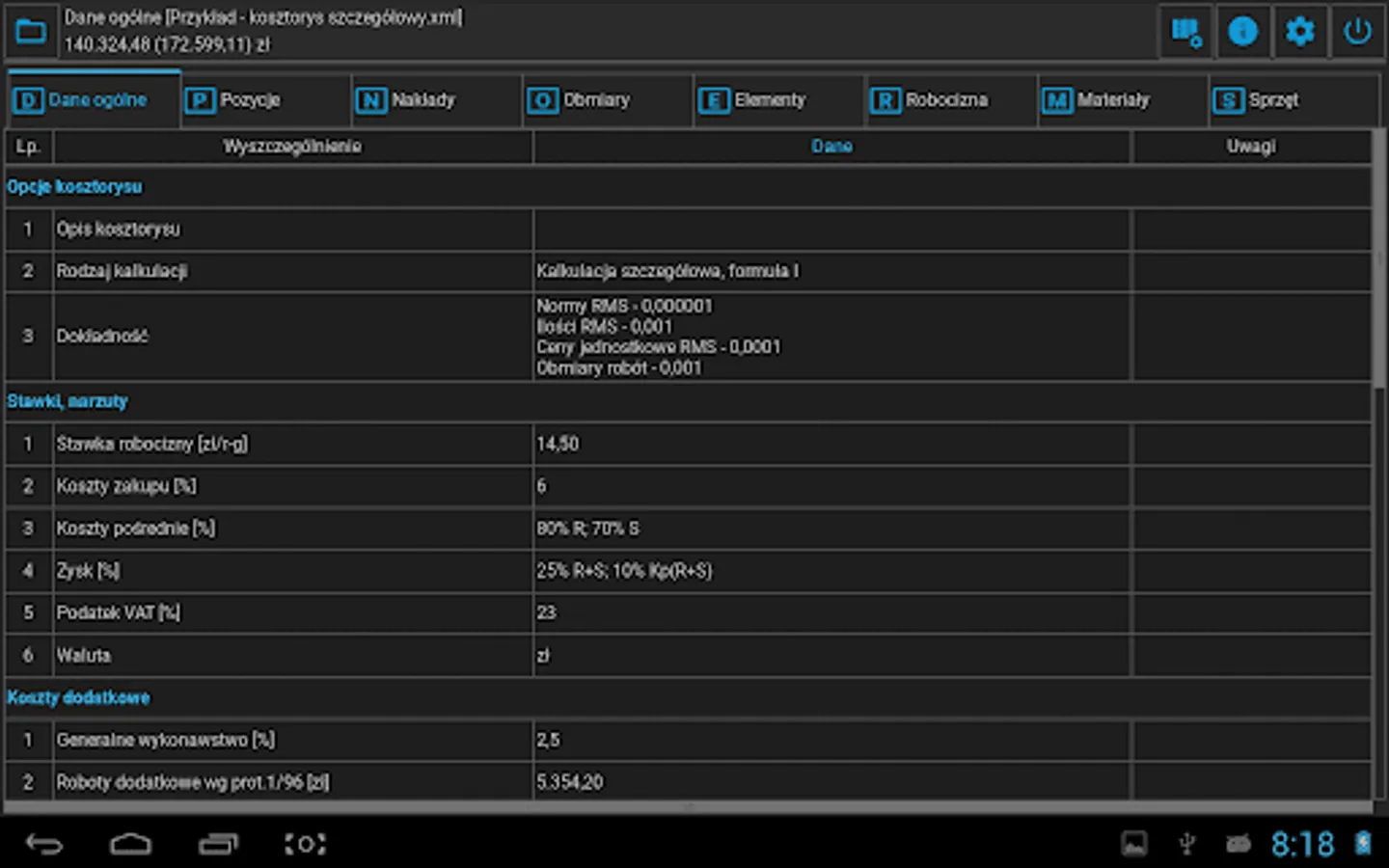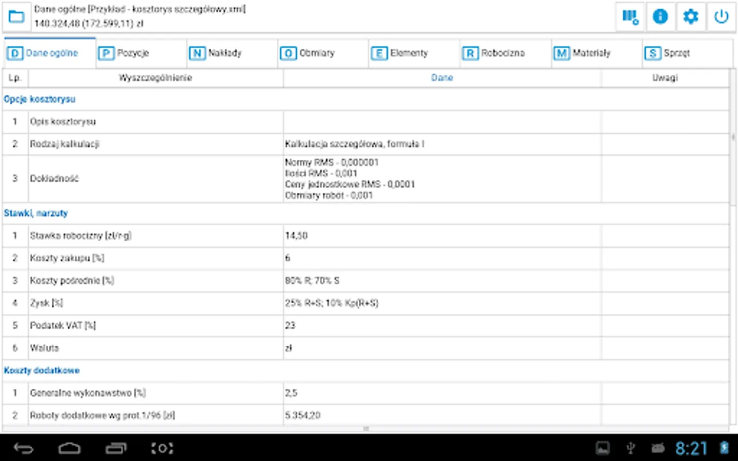 Supported cost estimate formats are XML, RDSX and RDS7. Cost estimates in XML format can be opened directly in the browser. Opening an estimate in the RDSX/RDS7 format requires uploading the file to our server for conversion.