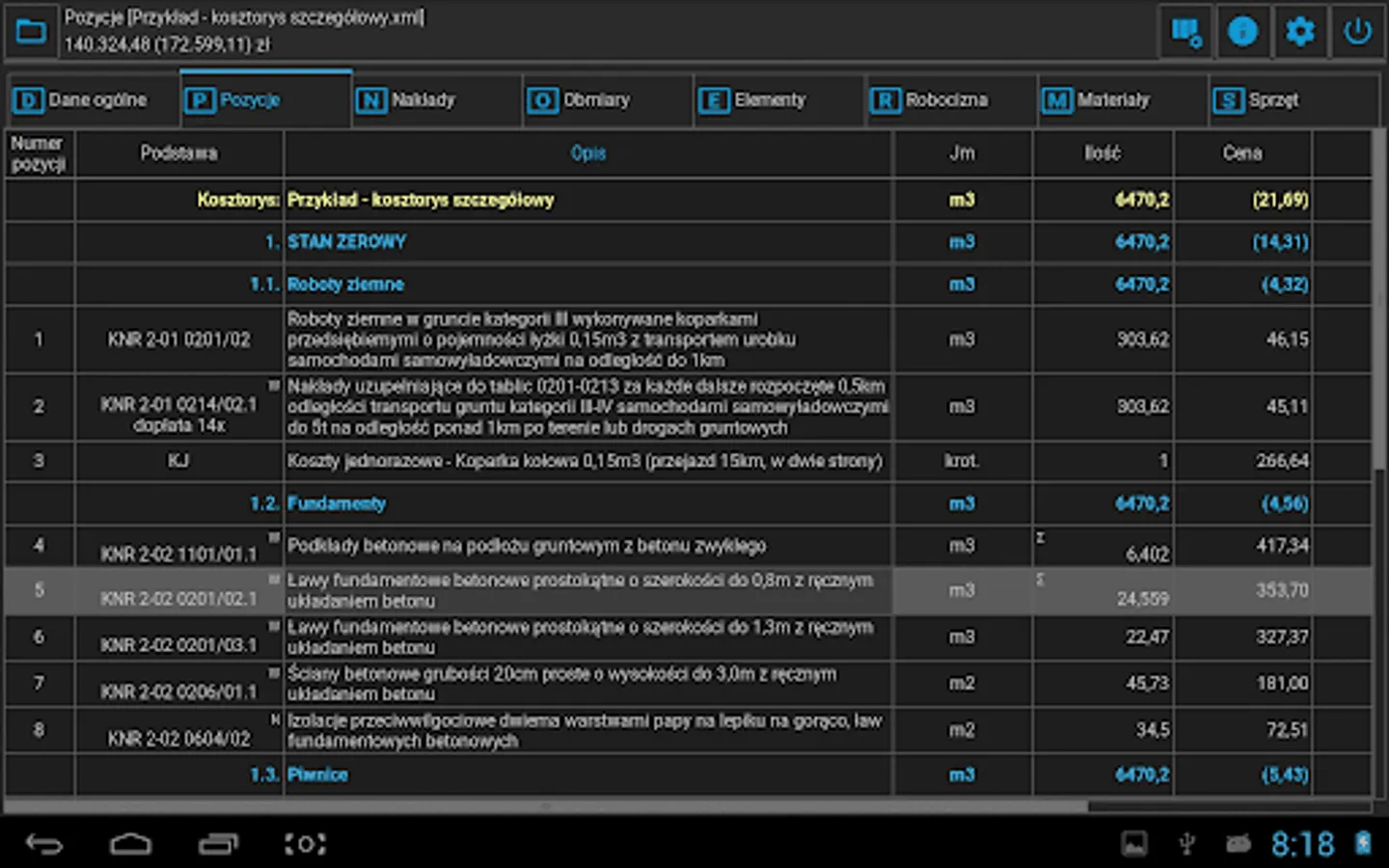 The cost estimate browser allows you to view cost estimates prepared using the latest Rhodos 8 and Rodos 7 software.