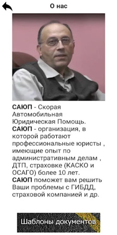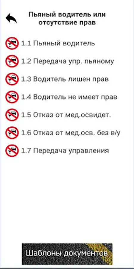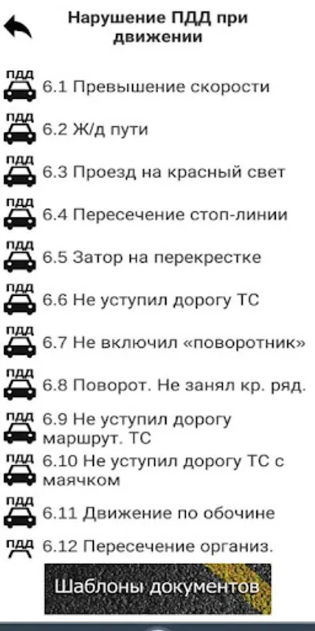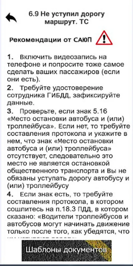 The program recommends drivers what to do when meeting with a traffic police inspector or in an accident. The driver must choose from the menu what situation he is in and receive a recommendation on what to do in his case.
