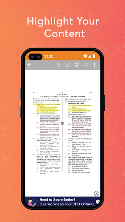 CTET Exam Preparation Guide App with Previous Year Solved Question Papers, Test Preps, Sample Papers, Mock Tests and CTET Study Materials for Paper 1 and Paper 2 in both Hindi and English language.