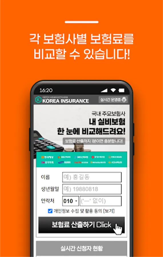 After installing the application, you can proceed with the actual cost insurance comparison estimate in real time.
