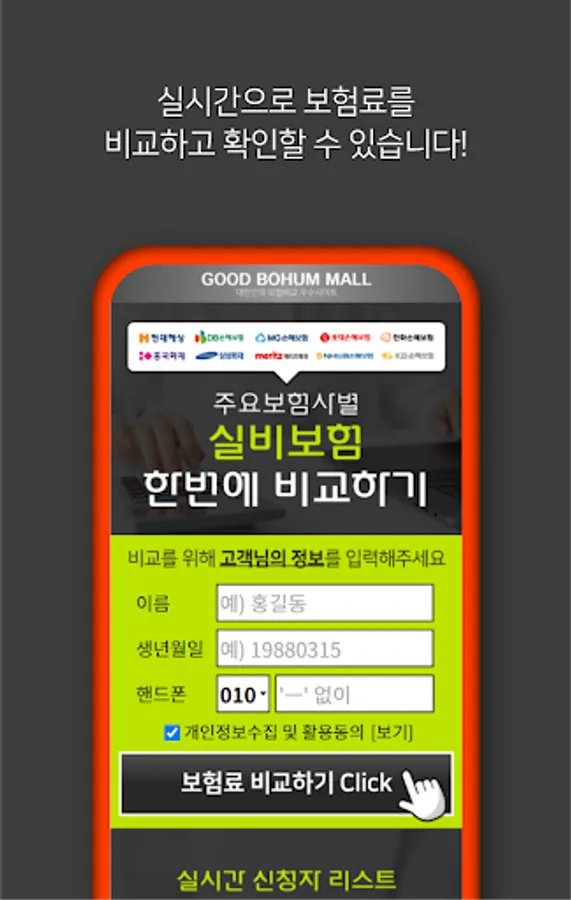 Compare the actual cost of insurance through the application of the actual cost of insurance that is different for each of the numerous insurance products of various insurance companies, and the subscription information and coverage filled with complex and difficult insurance terms.