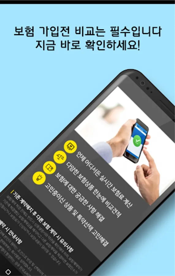 You can check the insurance products of all domestic insurance companies at a glance, and help you easily and quickly sign up for insurance.