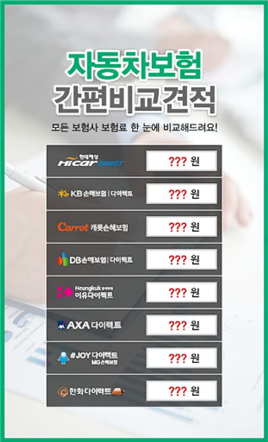 Compare various insurance products and auto insurance prices for each insurance company, complicated and difficult insurance terms, subscription terms, and coverages simply through the application.
