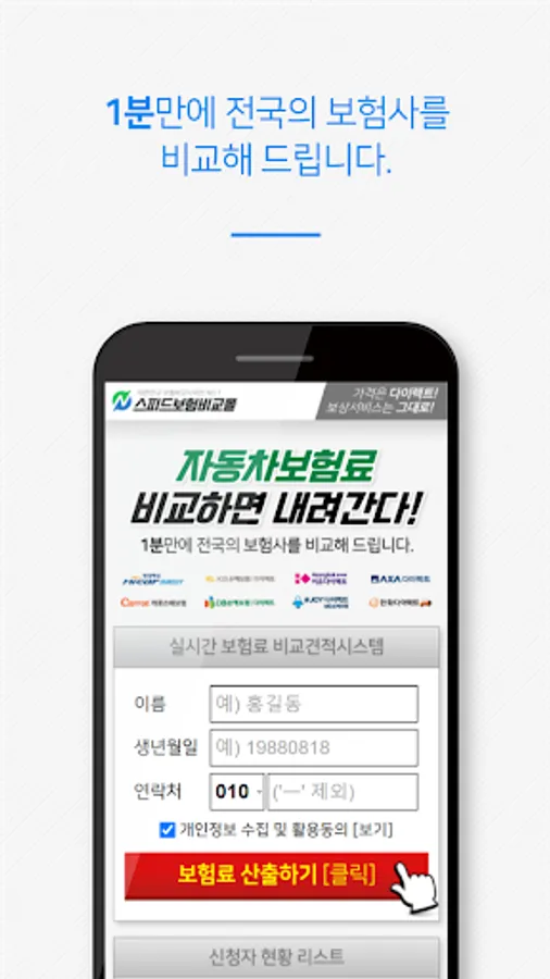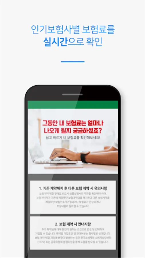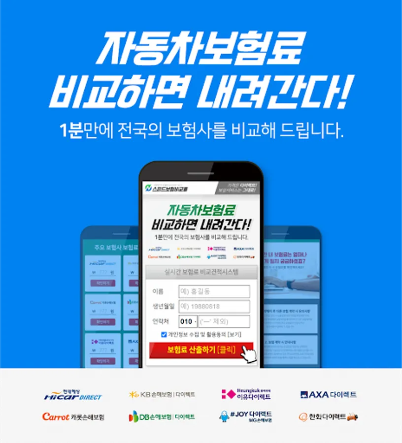 Comparing car insurance prices easily and quickly through a comparison estimate app such as insurance products and auto insurance prices of various insurance companies, coverage of complex and difficult to understand insurance terms and subscription information.