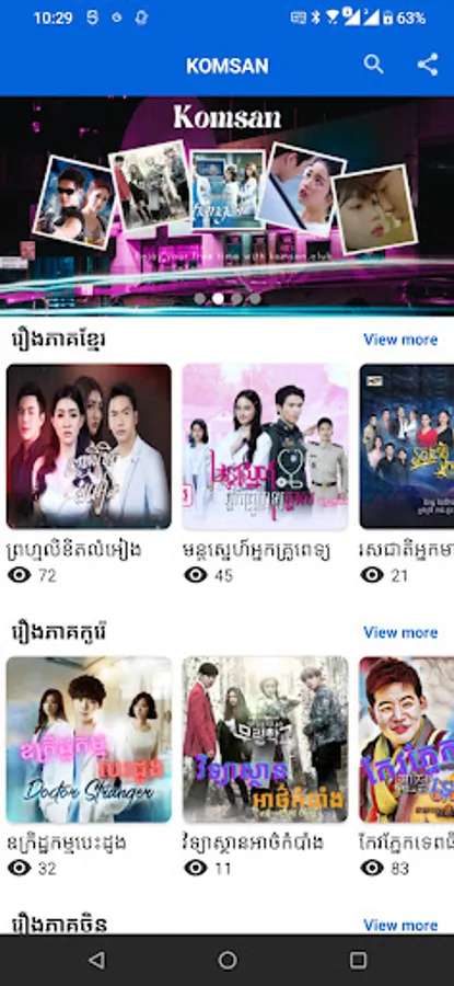 Komsan is a Application free watch 24/7 for entertainment in Cambodia. You can search by categories as Khmer drama, Khmer komsan, Khmer movie, Khmer TV, Khmer funny videos,Khmer dance,Khmer new video feed , Thai drama, Thai movide, Thai komsan, Thai TV, Thai funny, Thai short video, Korean drama , Kpop, Korean movies, Korean funny video, Japenese drama, Japenese movie, Japnense beset videos, Chinese drama, Chinese movies, Chinese funny video, Chinese Tik-Tok video, Vietname drama, Vietname movies, Asain drama, Asain movies, Best videos and Popular videos.