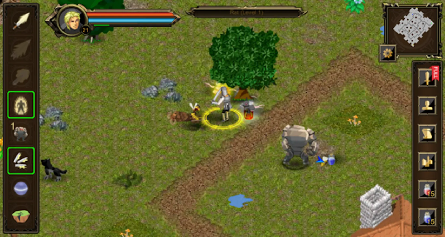 Items and weapons collected which are not equipped can be sold at the shop for gold. Attacks can be melee based or magic based. Click on the target enemy to battle.