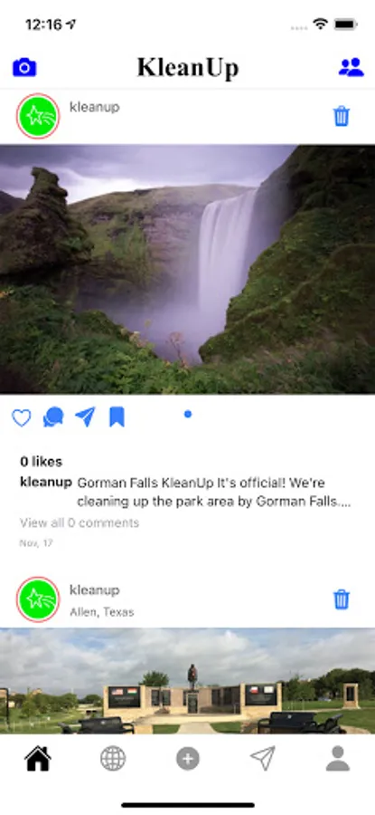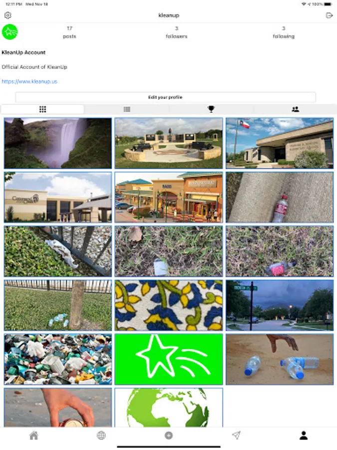 Welcome to KleanUp, a conscientious, social platform where you will be able to do connect with friends, share stories of how you're helping our environment, and express yourself to create a better world - one story at a time!