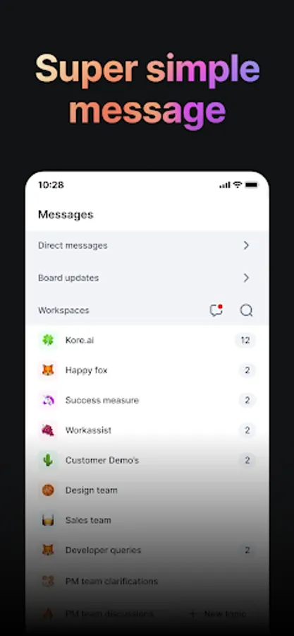 Workspace.ai by Kore.ai, gives teams AI-enabled workspaces - where they can collaborate and organize their work to accomplish the team's objectives. Moreover, it provides an immersive experience of the office, and allows them to focus on their work without distractions, converse with colleagues and organize their day.