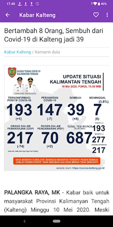 Kalteng Newspaper (Central Kalimantan News) is a news application that collects all the latest news from a variety of trusted online news and media sources in Central Kalimantan. Therefore this application will make it easier for readers to get news from existing news sources as needed.