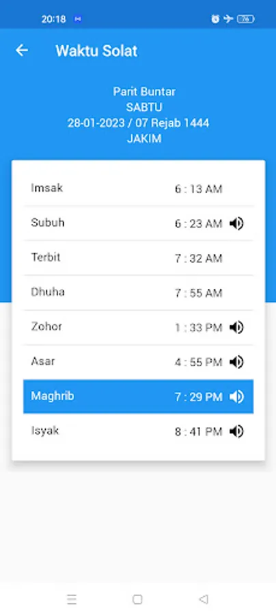 ★ Waktu solat Imsak, Subuh, Syuruk, Zohor, Asar, Maghrib dan Isyak.