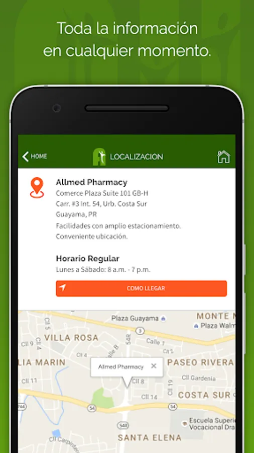 All information at any time: touch to call, directions, opening hours, services, events. Easy access to health news, health information, medication and supplements information and more.