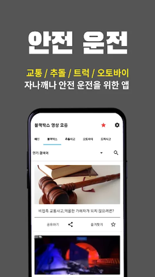 The black box video collection app provides the cause and video of traffic accidents along with traffic laws.