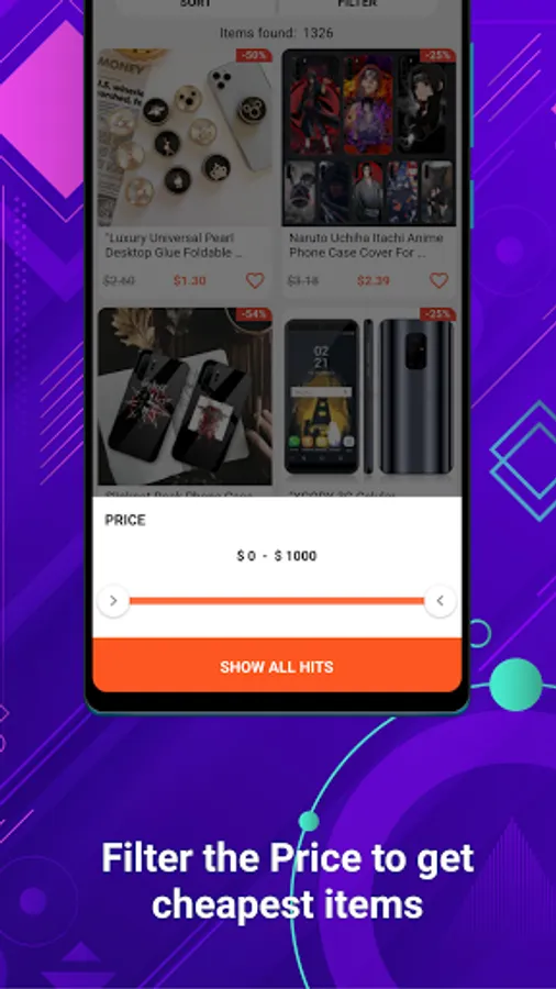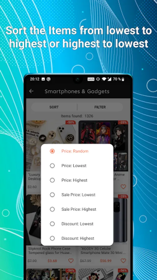 With such a huge number of Products, the china online shopping store App offers the possibility to sort the price, the sale price or the discount from lowest to highest. If you want to have just cheap products below 5$, you can filter the price too.