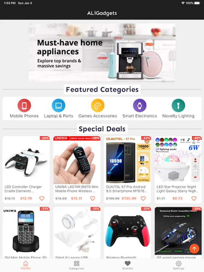 The app has more than 10 Categories like Smartphones, games gadgets, Laptops, Smart watches, RC cars, Computers… and much more.