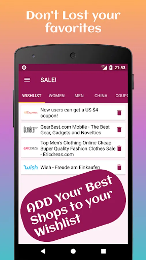 With SALE ! you will get access to many online shops that provide high quality, cheap and affordable Clothes for women and men.