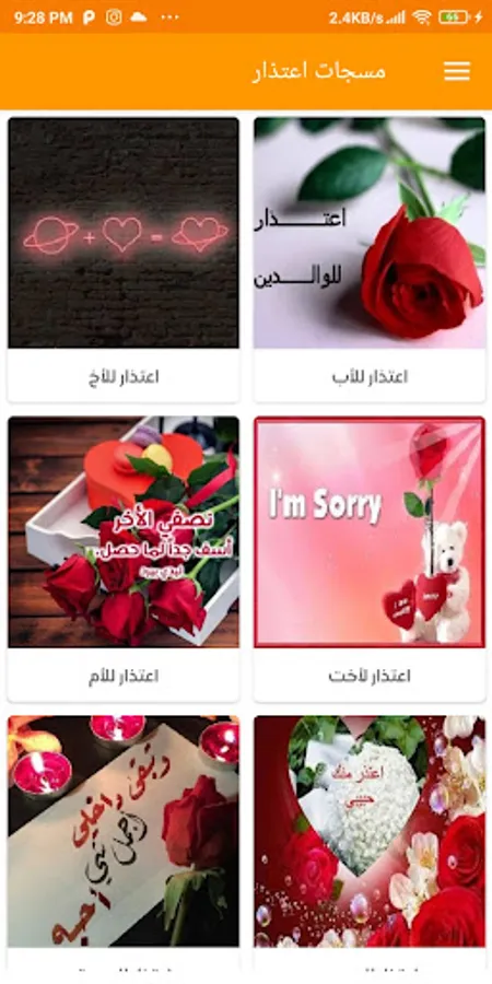 The application of messages of apology contains a wide range of messages of apology divided by category