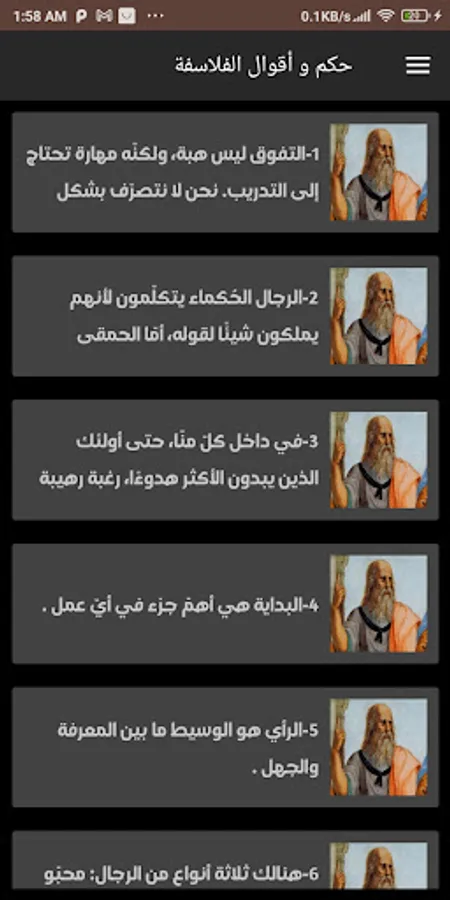 Judgment and sayings of philosophers is an application that contains judgment and sayings quoted from the most famous philosophers such as Plato and Voltaire and others.