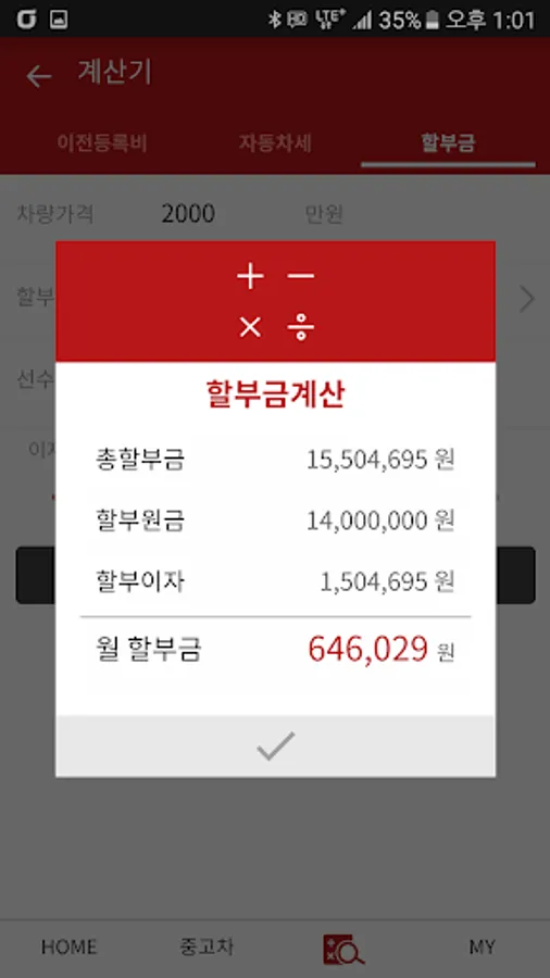 내차구매시 필요한 이전등록비, 자동차세, 할부금계산기 서비스