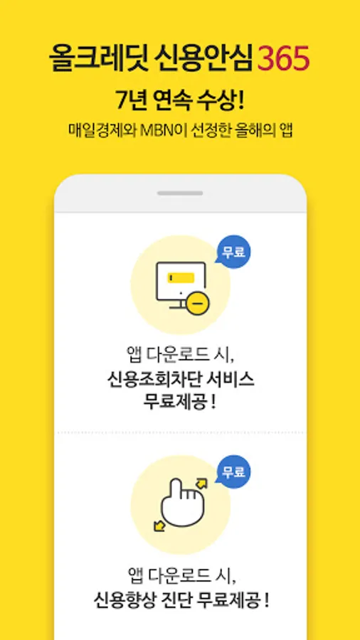 - Selected as App of the Year for 7 consecutive years: Maeil Business Newspaper and MBN selected App of the Year App Credit Rating 1st place!!