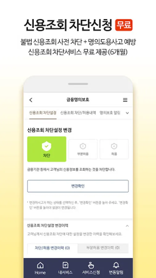 (Credit inquiry blocking service is provided free of charge for 6 months when applying through the APP, and existing financial name protection users will be provided with an additional 6 months from the service expiration date.)