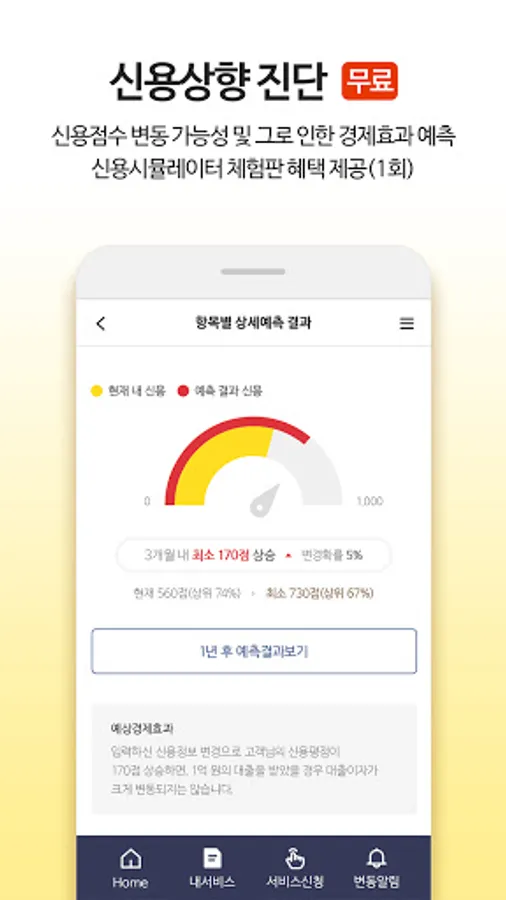 Credit management is easy and convenient by pointing out problems for inspection and improvement by credit experts and clearly presenting financial transaction factors that affect my credit.