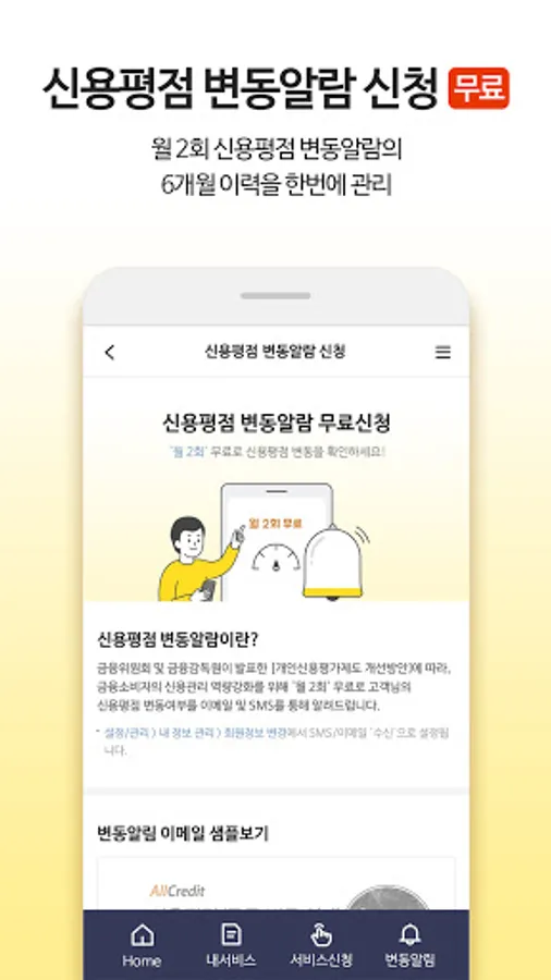 3. Notification service: Can apply for 6-month history management of credit score change free alarm twice a month (limited to rating change alarm applicants)
