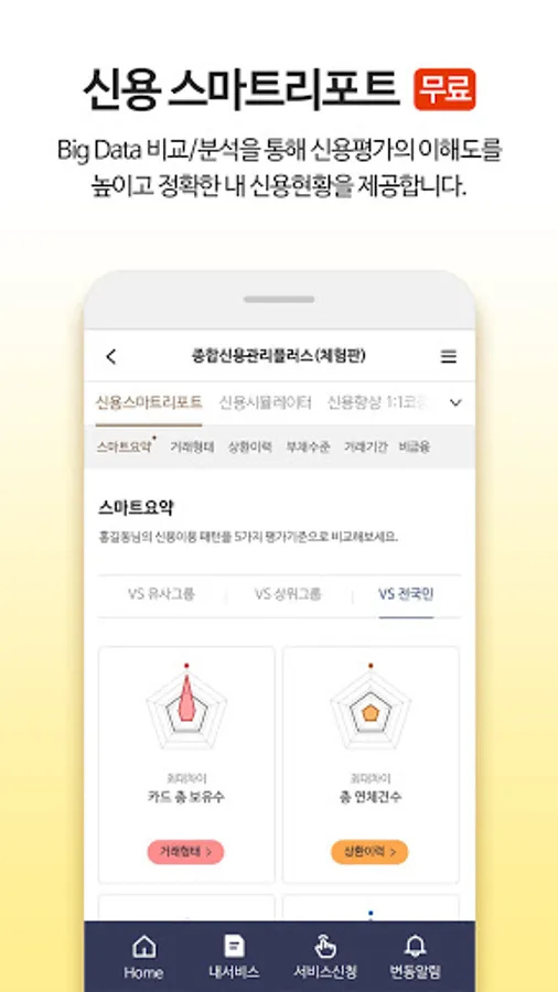 4. Smart Report: Determine the relative risk level by analyzing my credit status compared to the nation through big data analysis