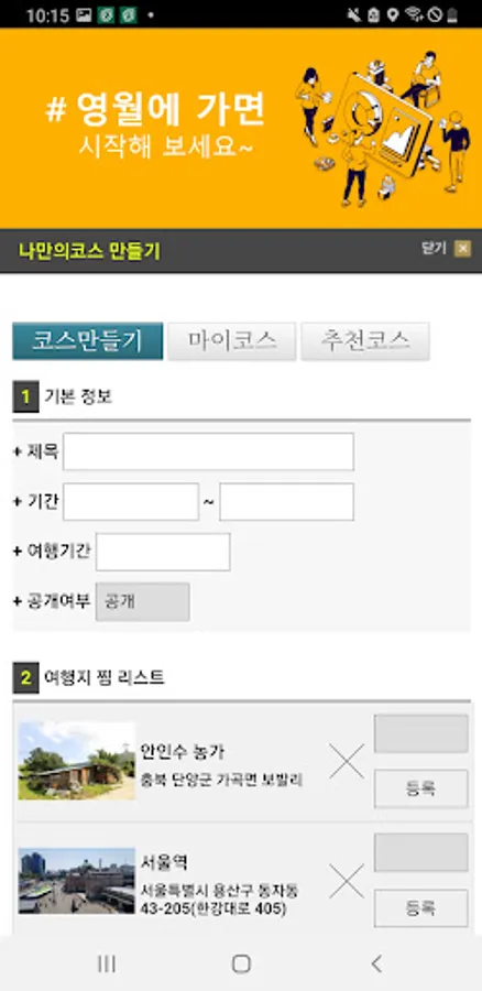 The Yeongwol Resources Platform mobile app is loaded with only real-name verified information, and the user can make a travel plan by wishing for the desired information and can utilize it when necessary.