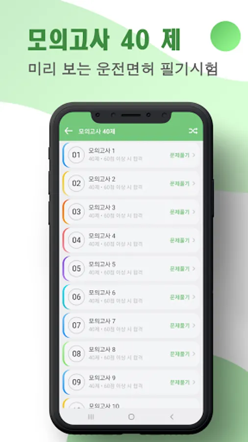Provides a function that allows you to solve 40 questions the same as the actual driver's license test time and immediately check whether or not you have passed the mock test.