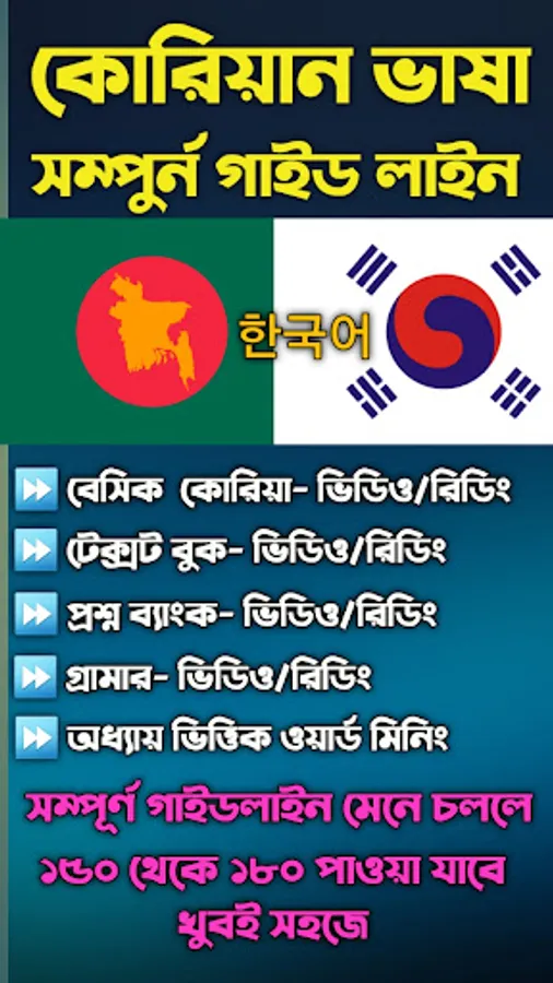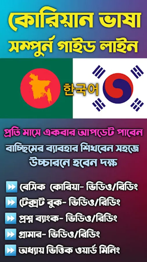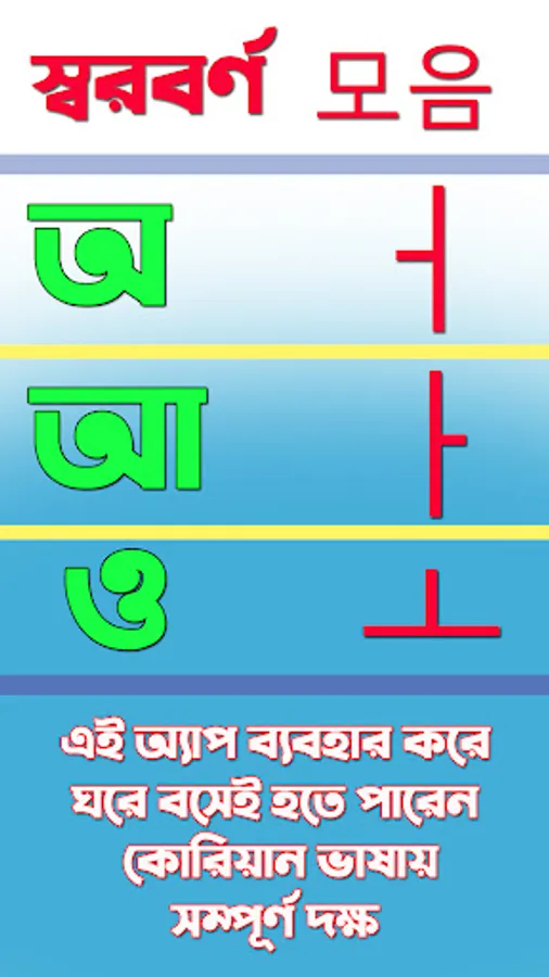 All types of guide lines from basic level to expert are given in one. A complete guide is provided for you to become fluent in Korean very easily and in a short time. By using this app you will not need any teacher to learn Korean language.