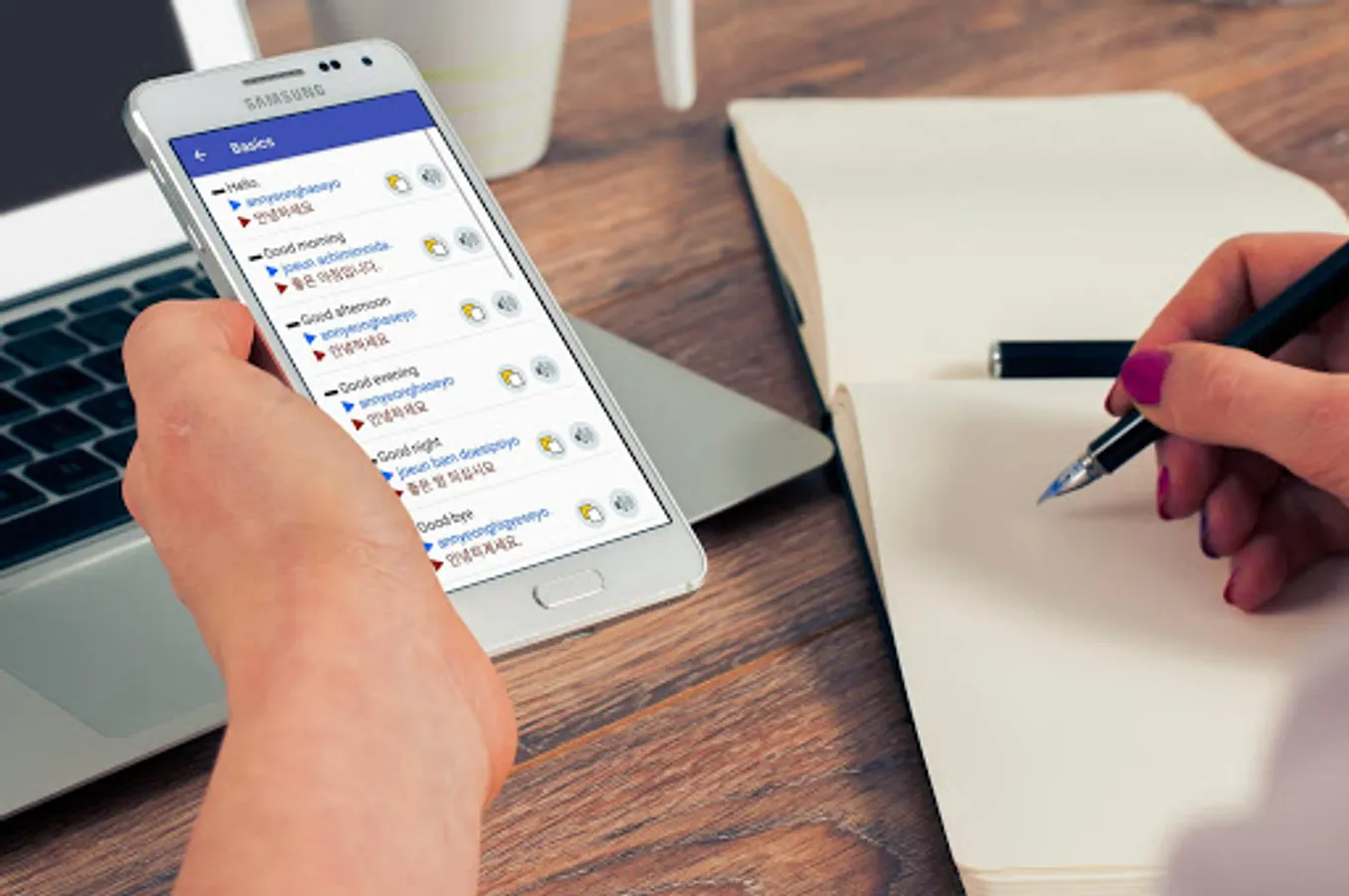 ✓ We believe that listening is the best way to learn Korean and that's why we will let you listen to each word inside our app and let you see it’s pronunciation as well as how to write it.