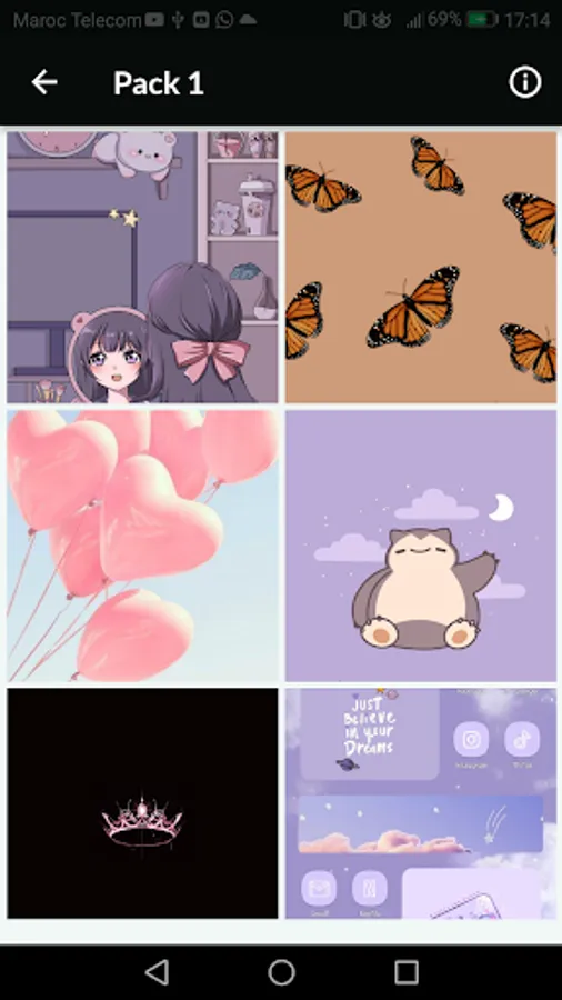 this app contains a lot of themes like : aesthetic kawaii, cloud wallpapers, girly pink aesthetic and collage wallpapers, neon signs aesthetic, vintage wallpapers, relaxing backgrounds, art wallpapers, It also includes glitter sky wallpapers and butterfly wallpapers and a lot of cute backgrounds for you to download for free and without internet connection