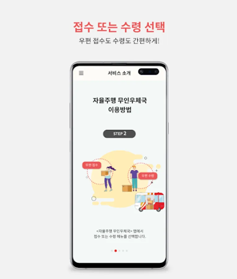 - 사용자가 지정한 시간과 장소에 무인우체국이 도착하면, 우편 접수 또는 배달 서비스를 이용합니다.