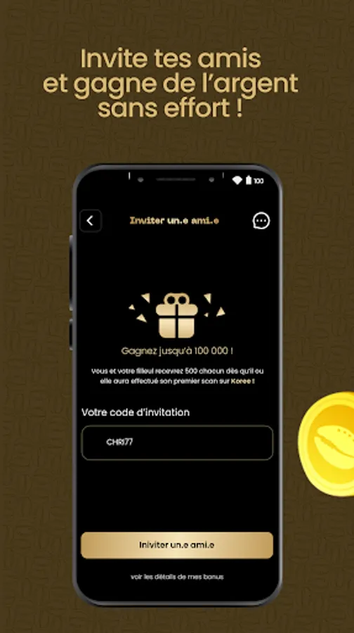 7. Referral and profit: An automatic referral system installed in the Koree app allows you to invite other lovers for discounts and promotions to expand the family. All this rewarded by the payment of the sum of 500FCFA in your Koree account and in the account of your guest as soon as the latter makes his first purchase with Koree!