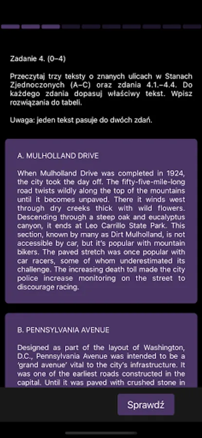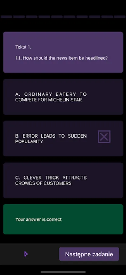W tej apce rozwiążesz matury z angielskiego z zeszłych lat. Pozwoli Ci to sprawdzić się przed właściwym egzaminem i dowiesz się czy musisz się jeszcze czegoś douczyć.