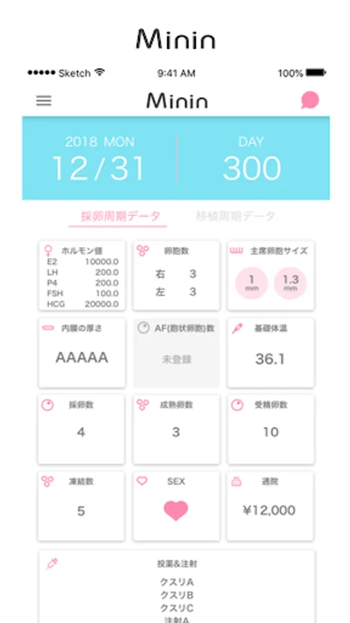 "Minin" is an application specialized for support of "in vitro fertilization". It is packed with the world's first menu to manage the infertility treatment process easily. Although I can not care for my heart, I will alleviate the adjustment time of treatment data to crispy!