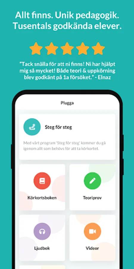 Thousands of satisfied students from our website korkortssidan.se who use the same material and pedagogy as the Driving License app.