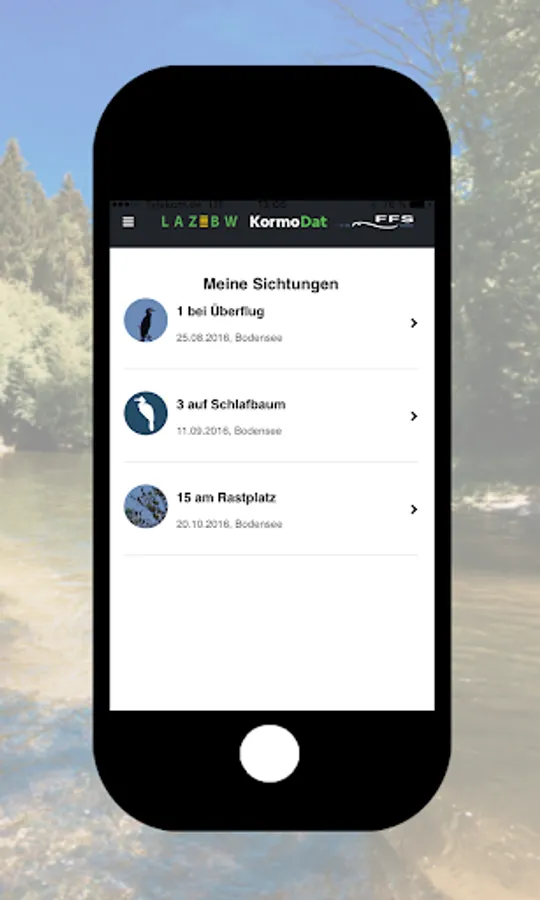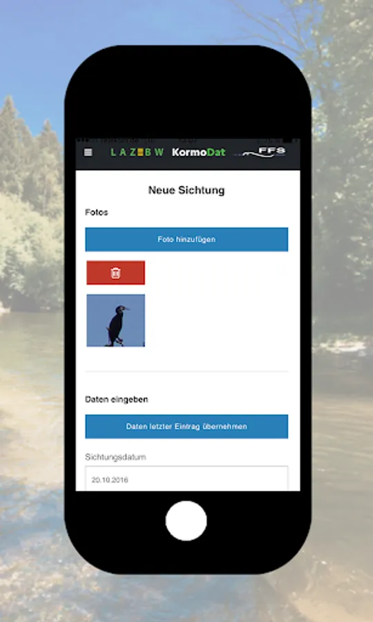 With the app KormoDat it is possible with mobile devices such as smart phone or tablet to capture Kormoran observations in Baden-Württemberg right at waters and report. The data will be subject to the control into the Cormorant database Baden-Württemberg (KormoDat). With the central detection of cormorants in B.-W. to the knowledge on the current inventory and its development can be improved.