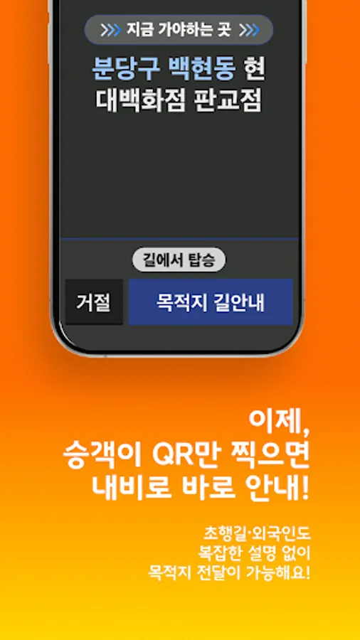 - QR Taxi Driver is a dedicated dispatch app that automatically receives the passenger's destination via QR, and the driver can start driving immediately with navigation. - Even first-time passengers or foreign passengers can convey their destination to the driver as soon as they board without complicated explanations, allowing for quick and accurate travel without misunderstandings.