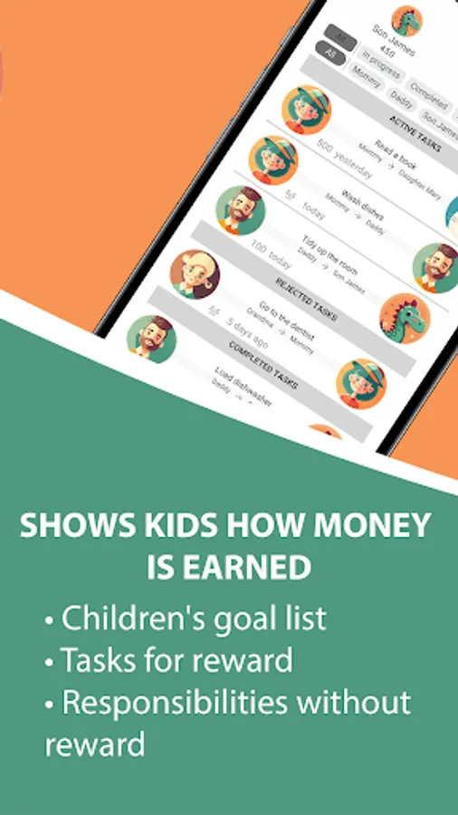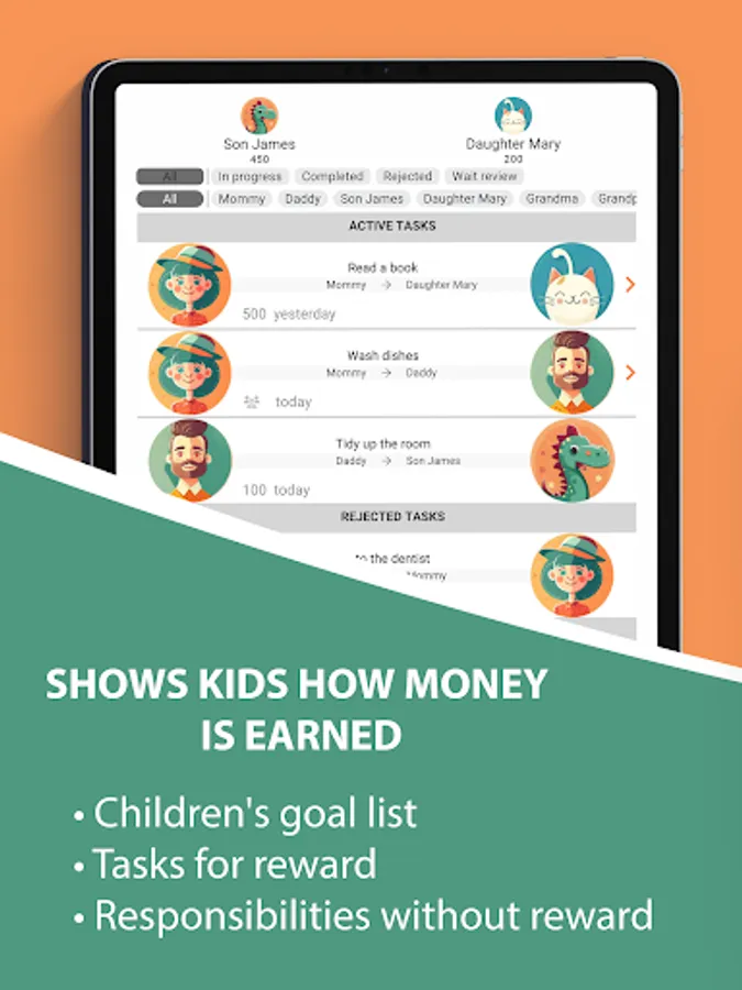 - children distribute the points accumulated for completed tasks from their wallet to their goals.