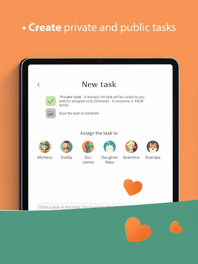 - create tasks visible to everyone in the family or only to the person for whom the task is created