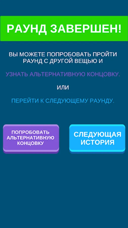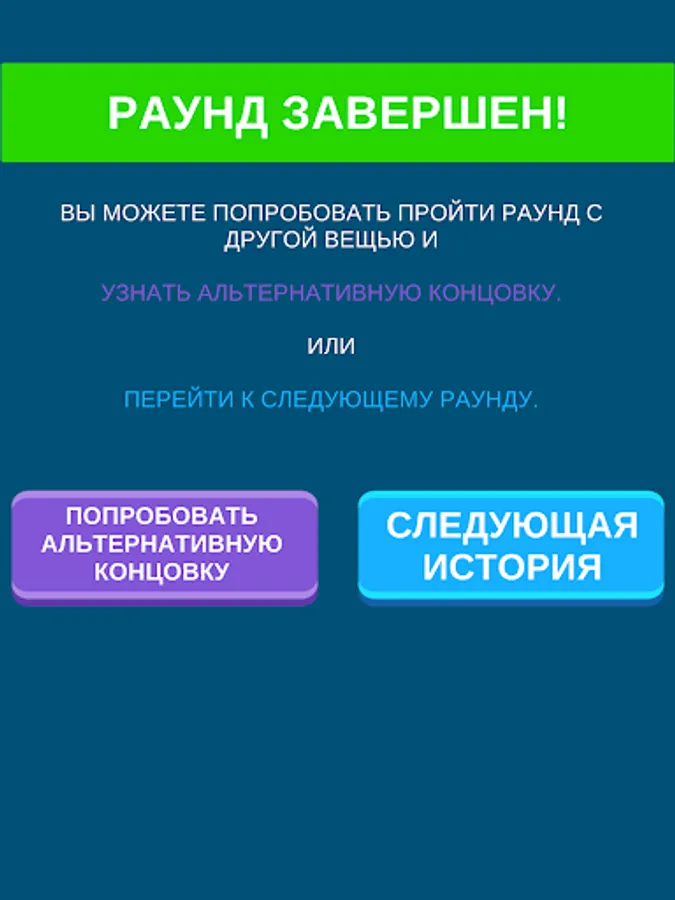 После того, как вы дойдете до конца уровня, вас ожидает разгадка: вы узнаете, оказался ли ваш выбор верным. Смогла ли вещь, которую вы решили взять с собой, помочь вам спасти мир от опасности, или же миссия по спасению мира будет провалена.