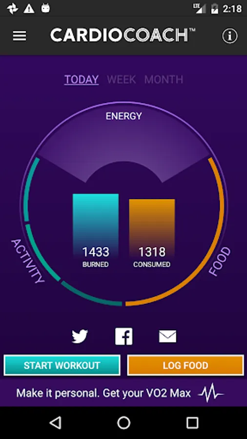 CardioCoach uses your personal VO2 Max test results to accurately calculate calories burned during a workout, identify the types of calories you are burning (fats vs carbs), and analyze the future calories you will burn after each workout (EPOC).