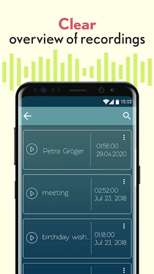 Ever had the frustrating experience of accidentally recording more than you intended? With Voice Recorder’s silence filter, recordings stop when the app recognizes silence. This way you don’t have to worry about the recording still being on.